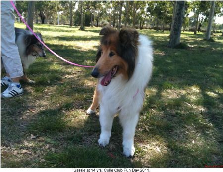 ![]() We caught up with Sassie at the Collie Club Fun Day March 2011. Not bad for 14+yrs old! Thanks De-Arne for taking this old girl into your heart. Jackie Garvin and the Victorian Collie Rescue Crew - Article from the Collie Chatter April 2009 edition
