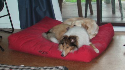 She was seen advertised by a lovely young lady that lives on her own with two other dogs, an old Sheltie and a young Lab X. De-Arne fell in love with Sassie as soon as she saw her photo, and when Sassie met De-Arne for the first time, she took to De-Arne like she was already part of De-Arne’s family. After the usual home check, and meet and greet of the dogs, it seemed the perfect home for Sassie to spend her twilight years. Sassie is now living happily ever after in her new home with her new companions, and she has especially grown attached to the 18 month old Lab X, Flyn, who is the perfect young gentleman/dog. She and Flyn sleep back to back every night.