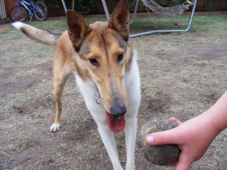 When she came to us she was a little shy and typically underweight, and we doubt she had ever been solicialised with any other dogs in her life, not aggressive at all, but no doggie manners, but she was brilliant with children.