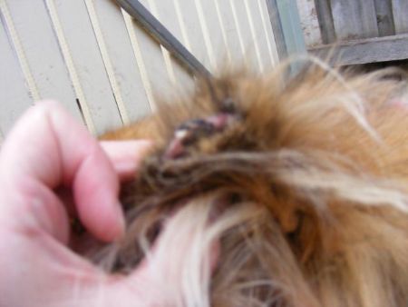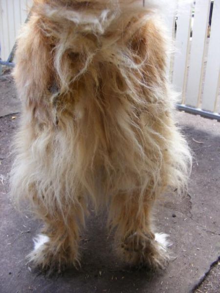 Ellie came to us in June 2009 from the RSPCA. She was surrendered to RSPCA because her owner’s children had all grown up and so nobody was there to play with her or look after her anymore. As you can see from the photos below she was in a dreadful state when she came into foster care. Her coat was a mess. RSPCA had treated her for fly blown ears, but other than that health problem she was a happy healthy dog.