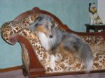 "Darcy" - in his adoptive home and very comfortable now thanks very much!!