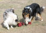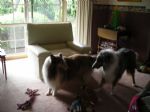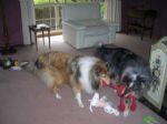 Mac and his buddy Kenzie with their visiting sheltie friend.